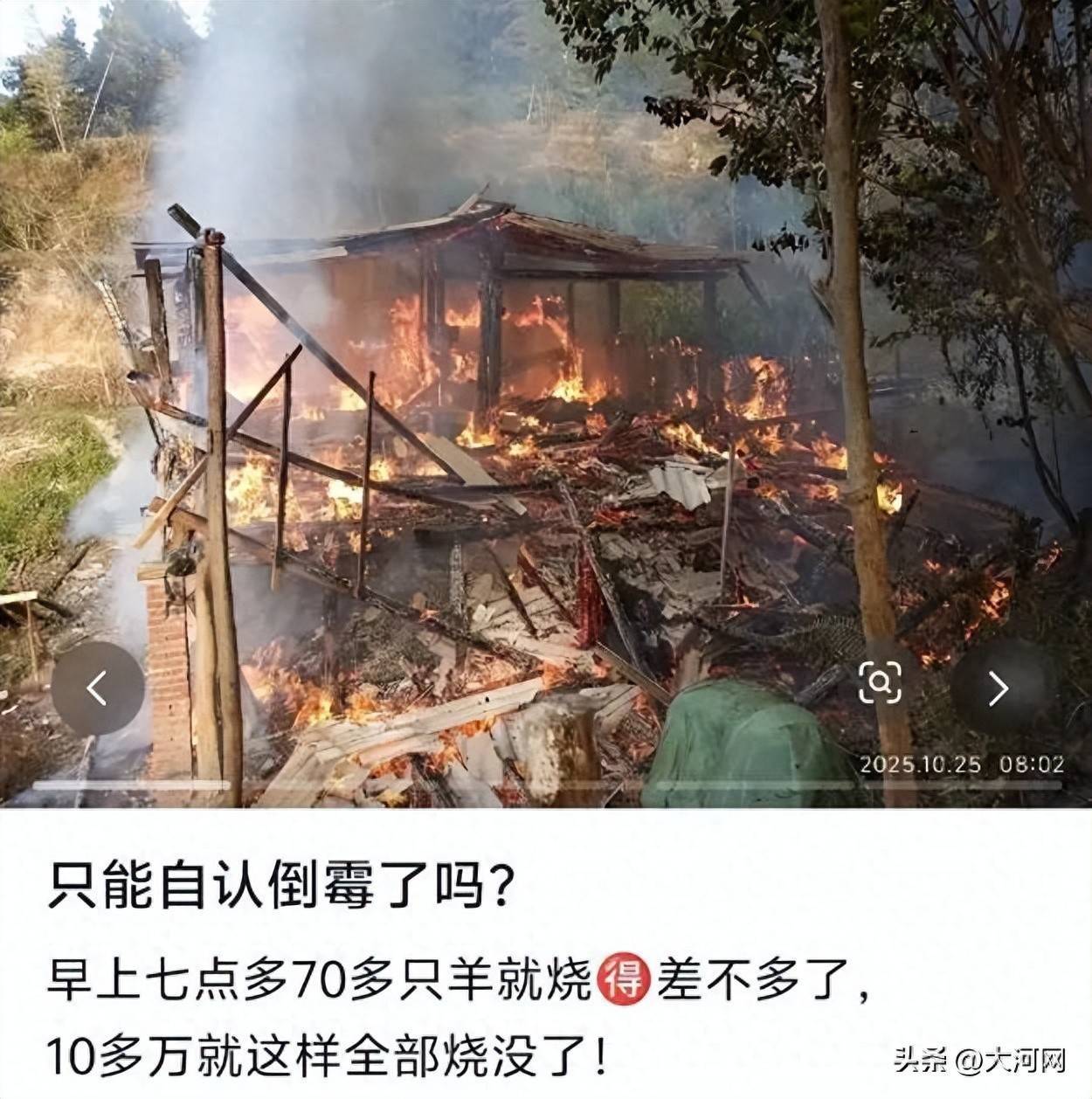 26日,凌溪村的一位村民告诉极目新闻记者,25日村中一养殖户的羊圈确实起了火,“不知道怎么回事就起火了,说是被烧了六七十只。他们家已经报了案。”