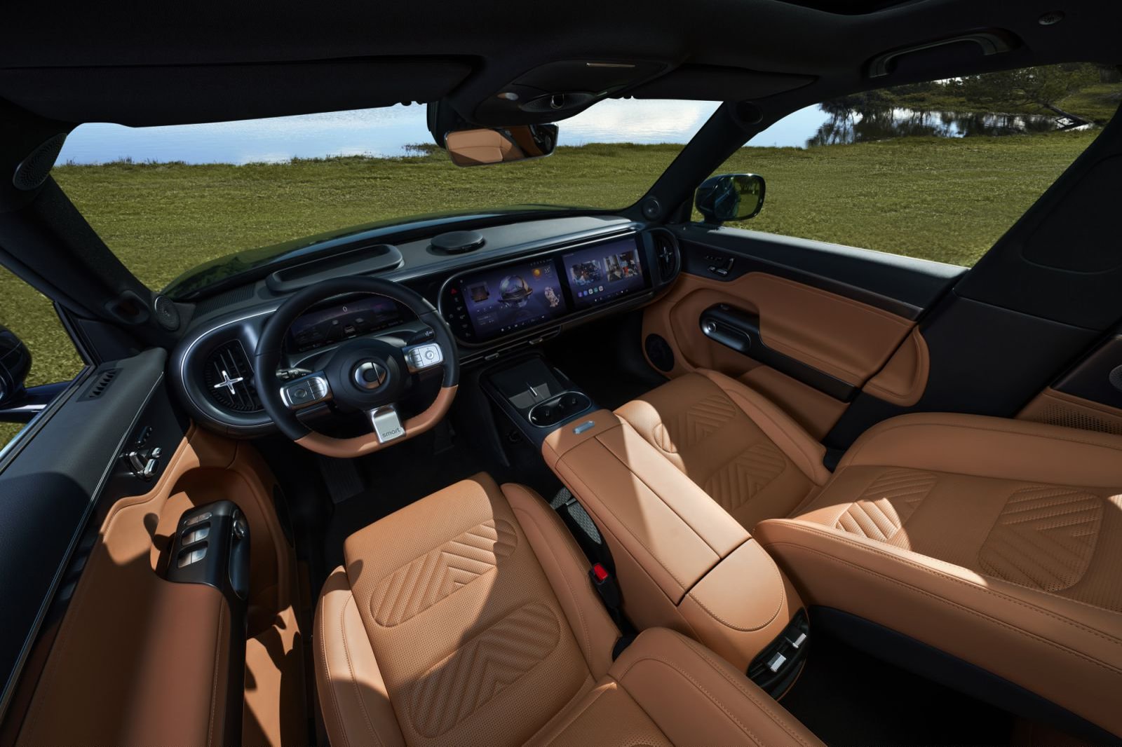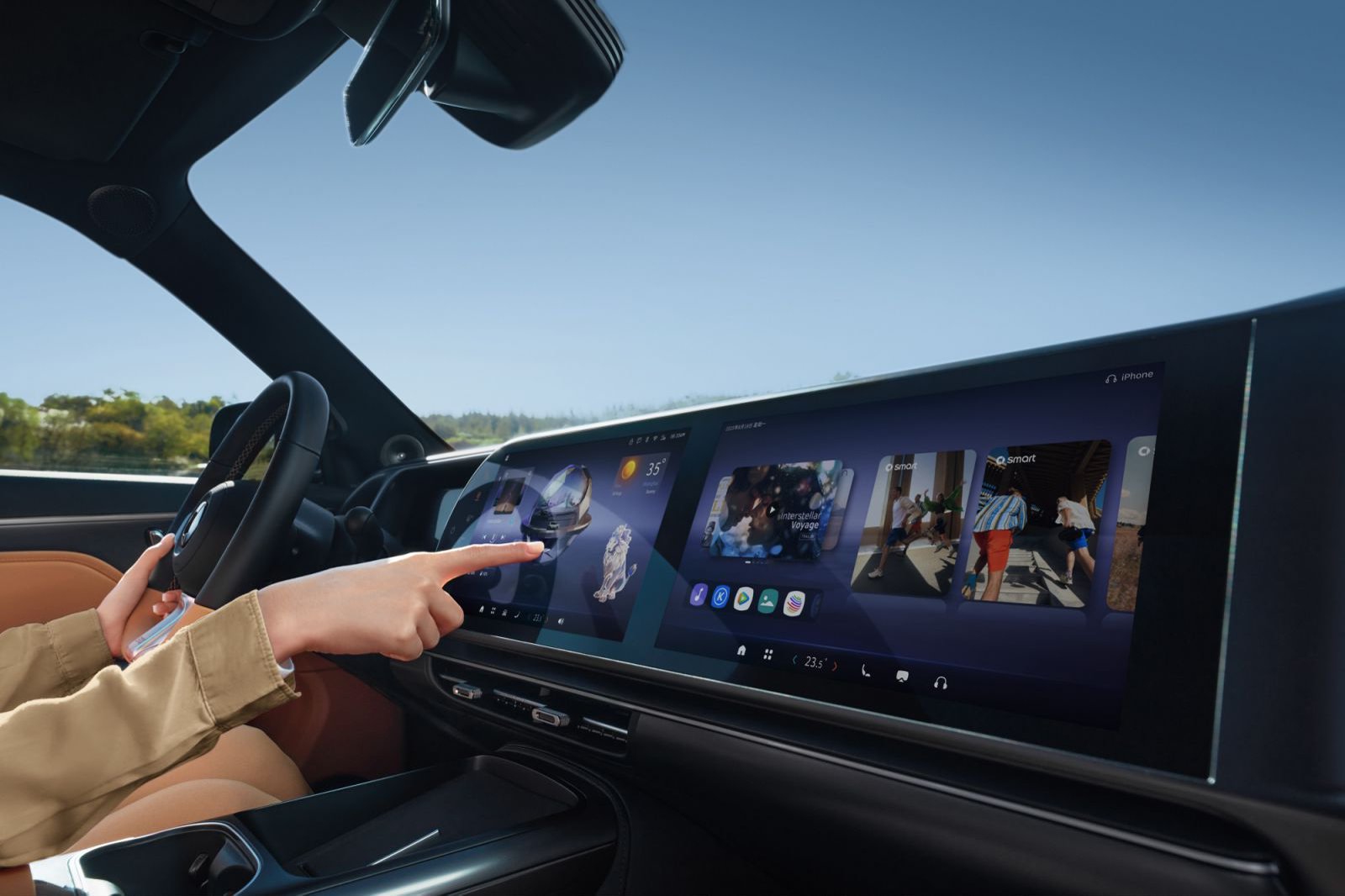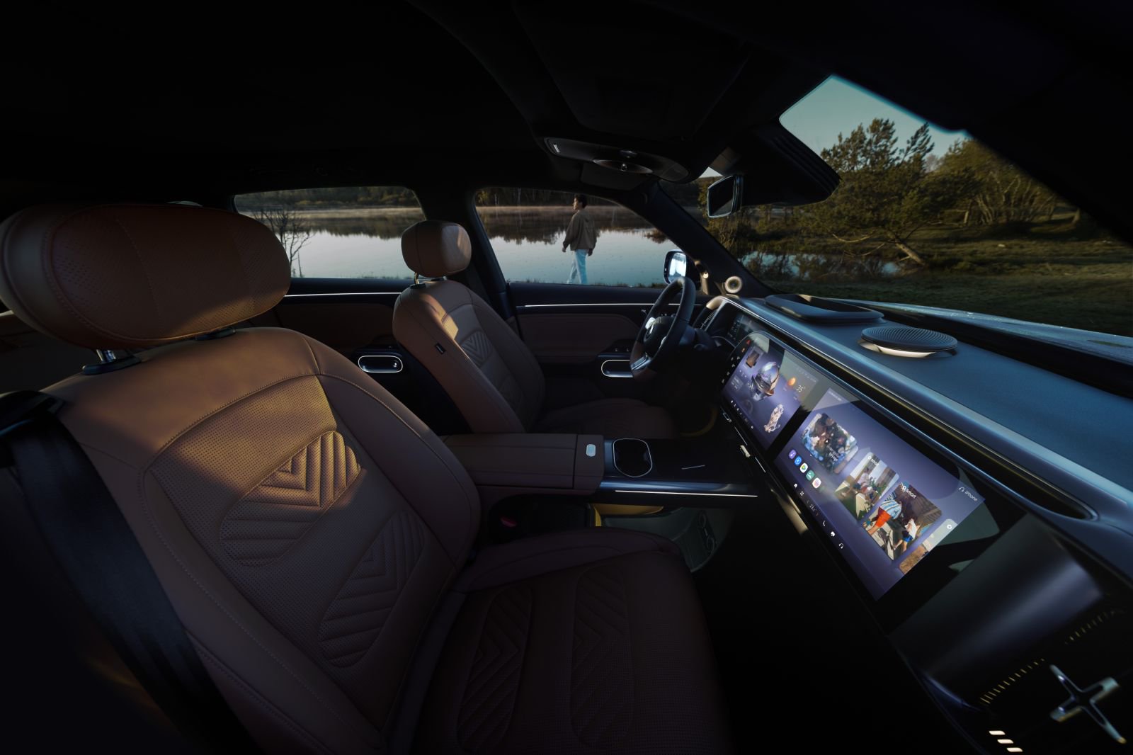 内饰空间:轻奢座舱与“5+2+7+1”全能公式。拉开车门,坐进驾驶舱,smart #5 EHD的内饰设计会迅速扭转你对“十多万级SUV”的传统认知。2026款 smart精灵#5 EHD 252Max 的内饰设计走的是“新奢”路线,把奔驰的精致感和新势力的科技味儿融合得挺到位。一坐进车内,最抓眼球的是那块13英寸中控屏+13英寸AMOLED超滑2.5K副驾屏,清晰又流畅,副驾娱乐体验直接拉满。主驾配了25.6英寸AR-HUD,导航、车速、智能辅助驾驶信息全都能投在前挡风上,不用低头看仪表,科技感和安全性都加分。中控布局简洁,用上了10.3英寸全彩高清液晶仪表+悬浮式设计,搭配电容式方向盘,支持触控操作,手感和响应都很“高级。内饰用料确实讲究,Nappa真皮座椅配HDD绗缝复合工艺,摸上去细腻有质感,浅蜜棕配色显得温馨又不失档次,确实比新势力更懂豪华。手能触及之处,大量采用了软性材质包覆,搭配精致的缝线和质感出色的金属装饰件,营造出浓厚的轻奢氛围。